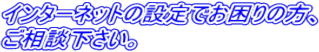 | ・インターネットをやってみたいけど、どうやってどこに申し込めばよいのか判らない方 ・インターネットをやっているんだけど、支払いが高い、スピードが遅い方 ・申し込んだんだけど、つなぎ方が判らない方 ・2台、3台と家族みんなでインターネットをやりたい方 など、どんなことでもまずはご相談下さい。 |